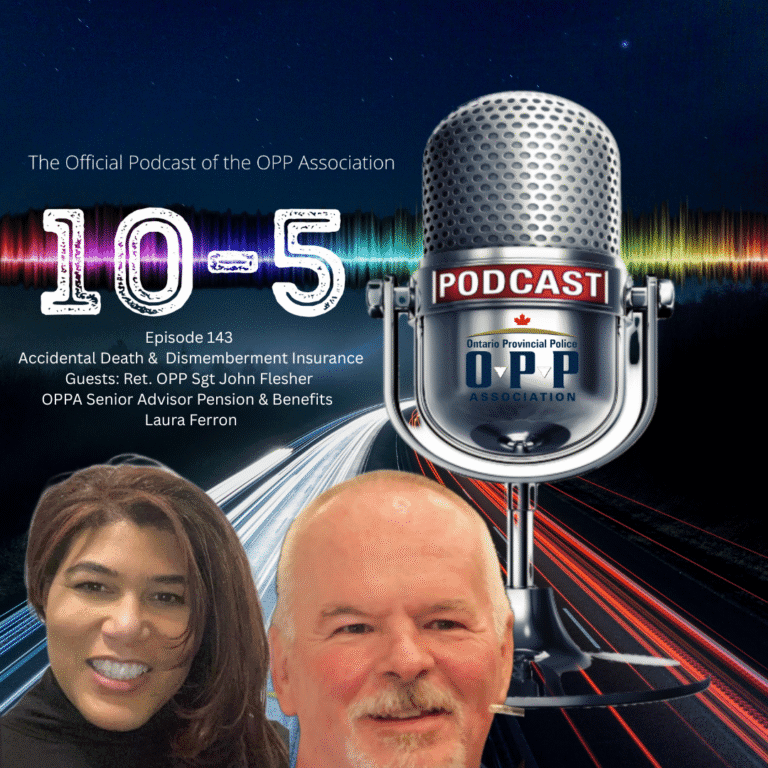 Retired OPP Sergeant John Flesher’s life suddenly changed in June, 2024 when he was struck from behind by a vehicle while riding his motorcycle. John was left with life altering injuries. John joins the 10-5 Podcast to discuss his journey of reslience and recovery, and stress the need to have accidental death and dismemberment insurance, a power of attorney for personal care and property, and a will. Laura Ferron is the Senior Advisor, Pension and Benefits at the Ontario Provincial Police Association. Laura joins the 10-5 Podcast to explain in detail the accidental death and dismemberment insurance coverage available to OPP Association members and give some tips on powers of attorney and wills.