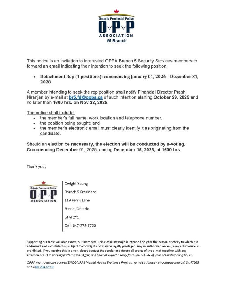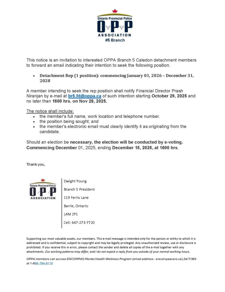 An election for Provincial Directors was held today during the 2025 Ontario Provincial Police Association (OPPA) Annual General Meeting.